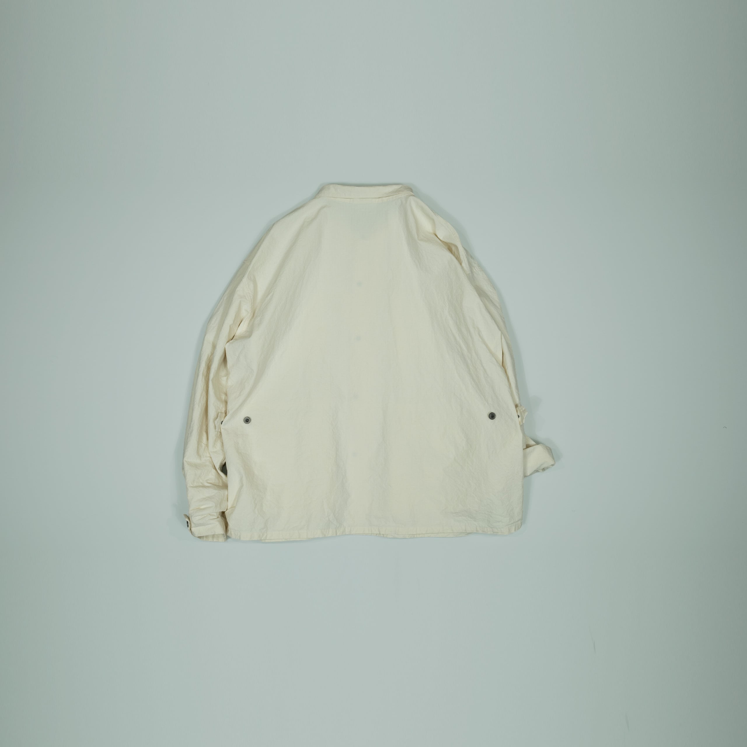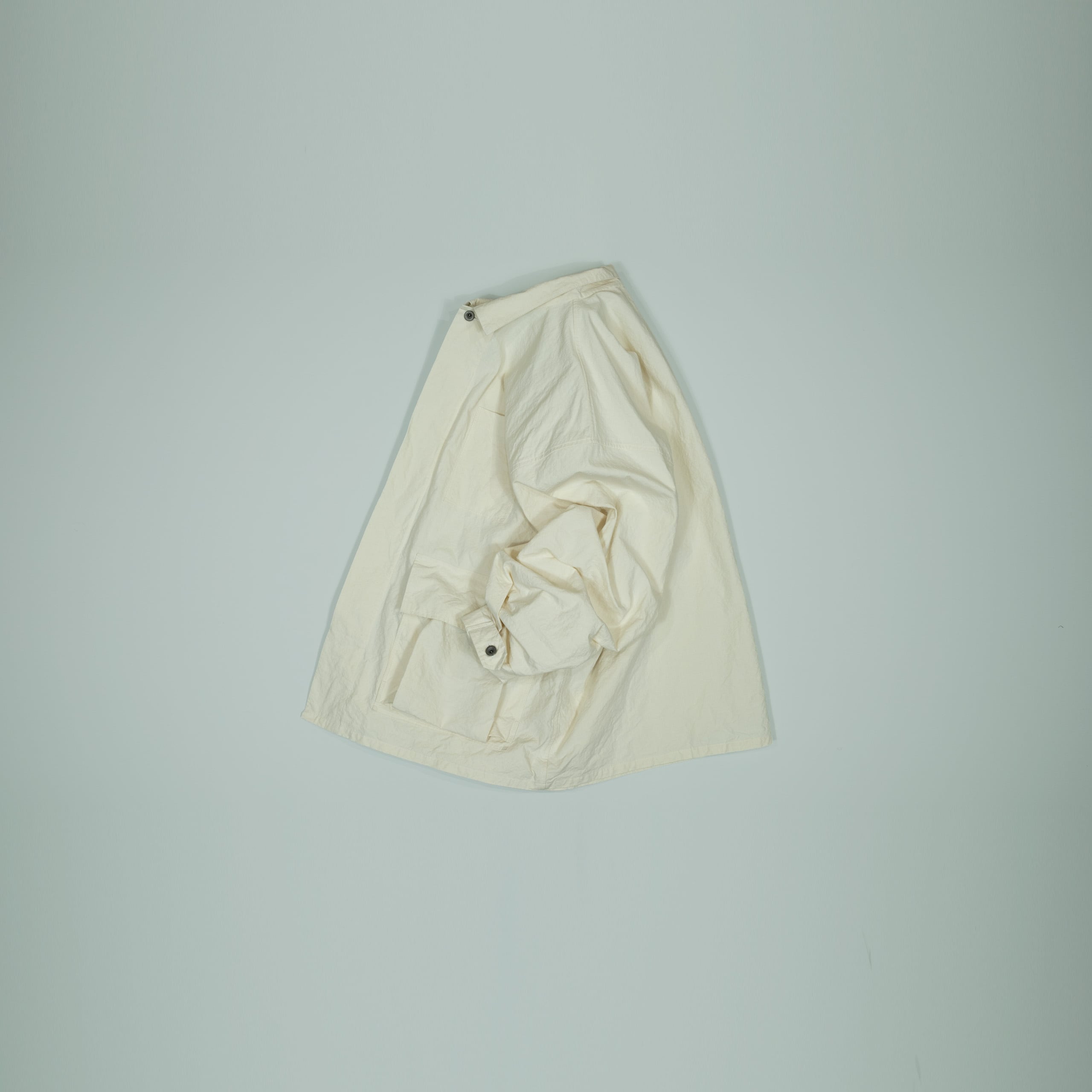 袖先にボタンがあるので太いままロールしてもらっても良い落ち感