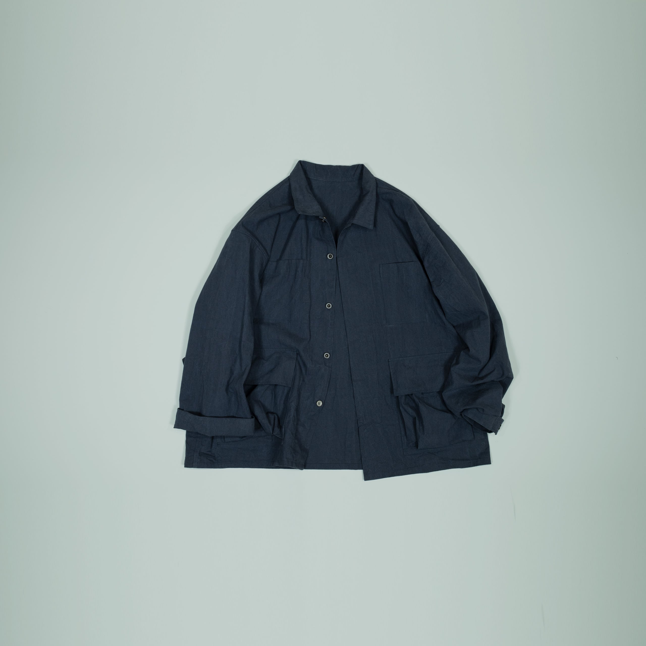 袖先にボタンがあるので太いままロールしてもらっても良い落ち感